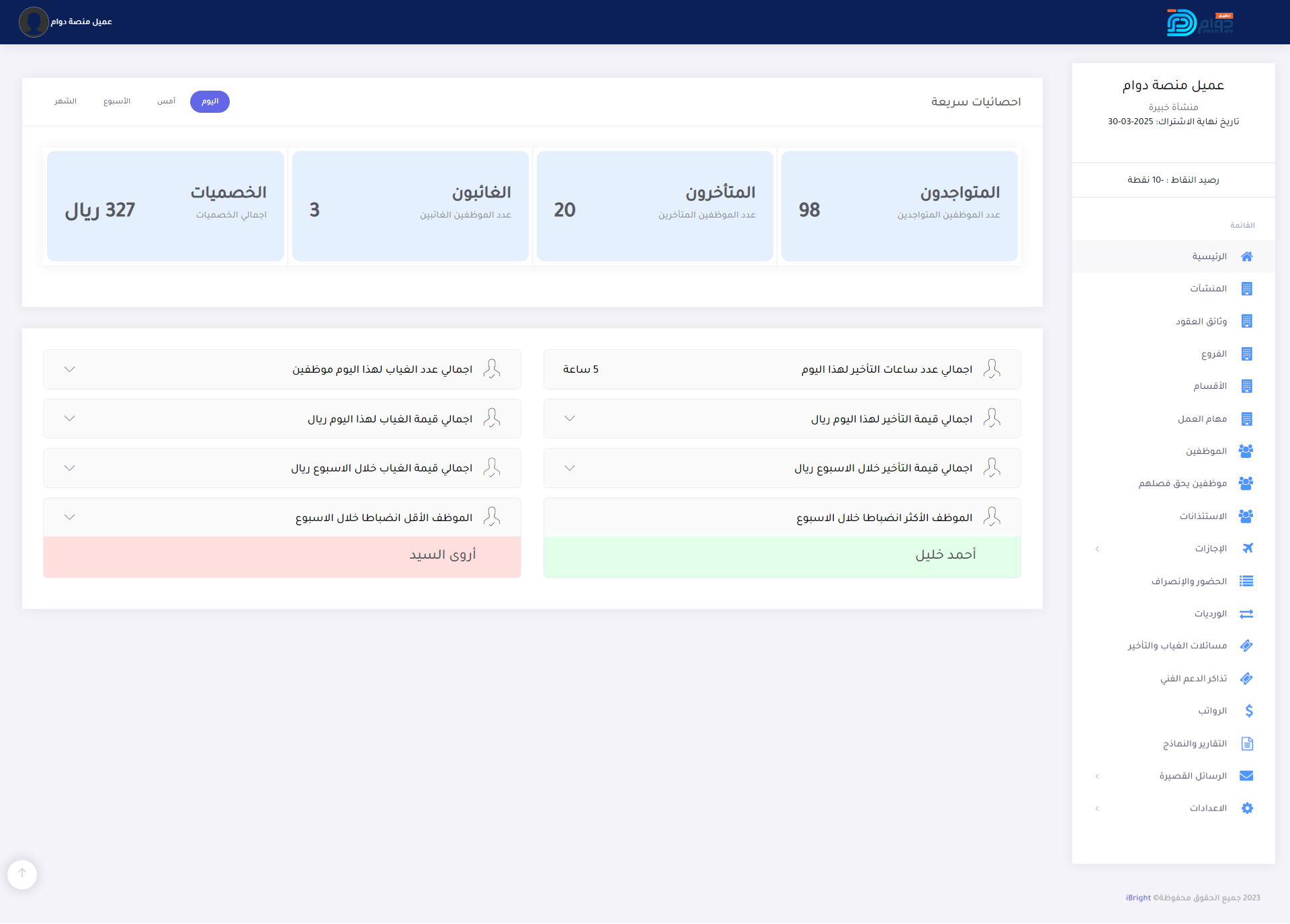 أول نظام حضور وانصراف يدير المنشأة حسب الأنظمة واللوائح التي اعتمدتها وزارة الموارد البشرية والتنمية الاجتماعية